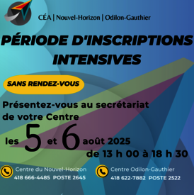 Les 5 et 6 août 2025, les centres d’éducation des adultes Nouvel-Horizon et Odilon-Gauthier tiendront des journées portes ouvertes pour l’inscription, sans rendez-vous.